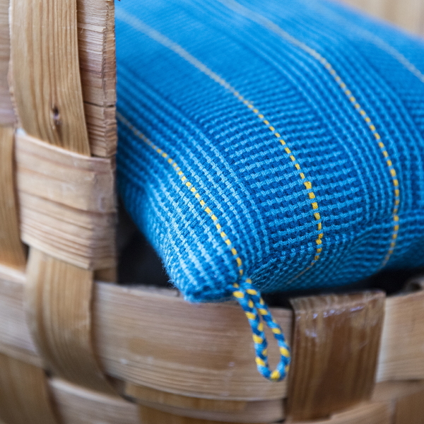 Kudo kesäisen raikkaat saunatekstiilit, laudeliina ja saunatyyny keveillä ja helppokäyttöisillä sylikangaspuilla. Ohje sisältää myös luonti- ja kudontaohjeen perinteisille vipukangaspuille. Kuvat: Sonja Karlsson
