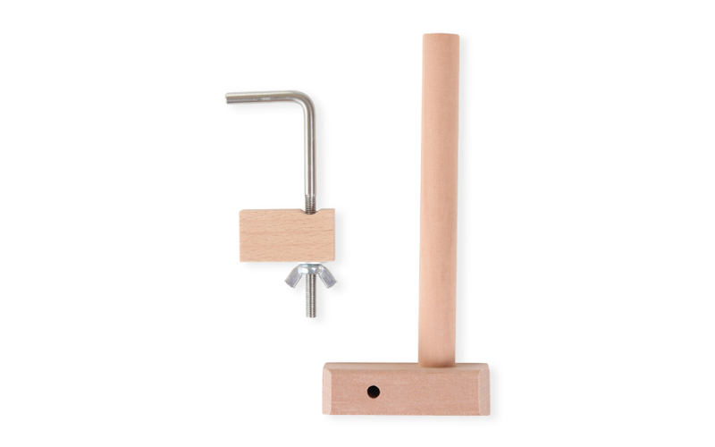 Ashfordin puristin ja luontitappi. Lisä- ja varaosa kaikkiin Ashfordin sylikangaspuihin. Paketissa 1 puristin, 1 tappi ja alaosa. Pinta viimeistelty, lakkaamaton.